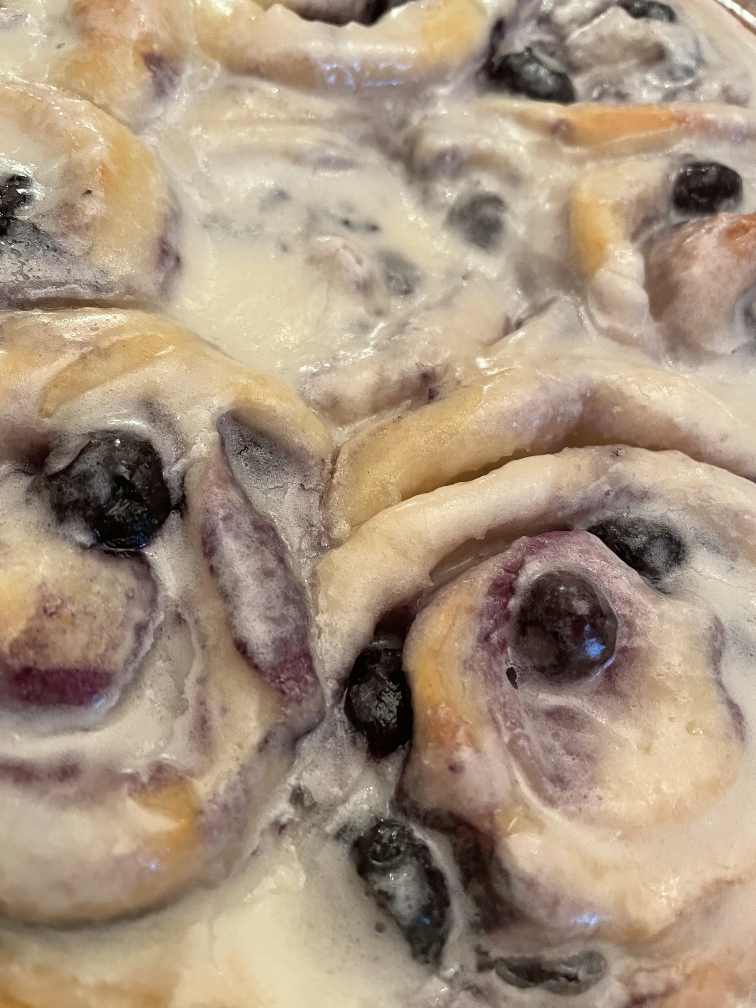 Like nothing you have ever had before! These super delicious sweet rolls have blueberries rolled in them. You can have them for breakfast or dessert! They are really amazing!